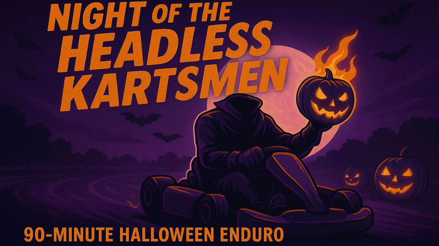 Welcome to AMP's "Night of the Headless Kartsmen". Each team is allowed 1 driver. Teams will be using our concession karts for this event. This is an Arrive and Drive event, only close toed shoes required.